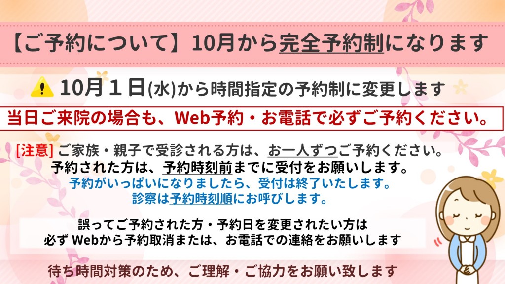 【ご予約について】2025年10月1日(水)から完全予約制になります